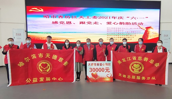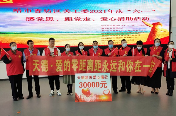 香坊区关工委与天德慈善共同主办庆“六一”爱心捐助活动