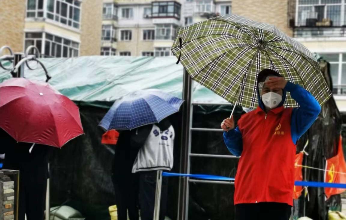 志愿者王柯娜已经年过半百了,她还是一位病休在家的癌症术后患者。这次参加抗疫志愿服务,她不但昼夜吃住在白毛小区,而且志愿服务中工作格外认真负责。天降大雨时,她打着雨伞雷打不动的坚持在现场维持秩序。她还能经常这工作中出现的问题提出改进工作建议。