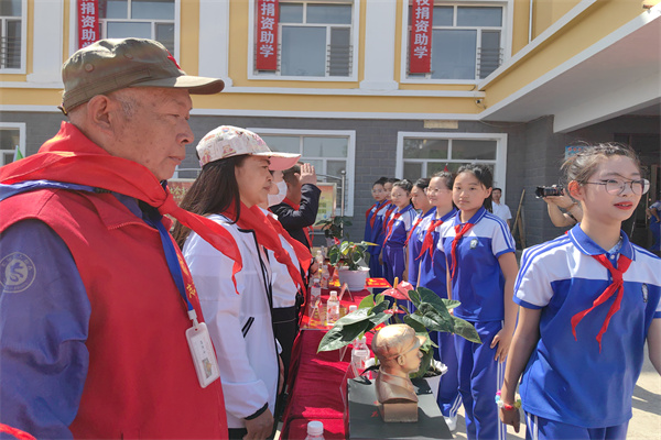 少先队员为参加活动的领导和嘉宾献上了珍贵的礼物——红领巾。