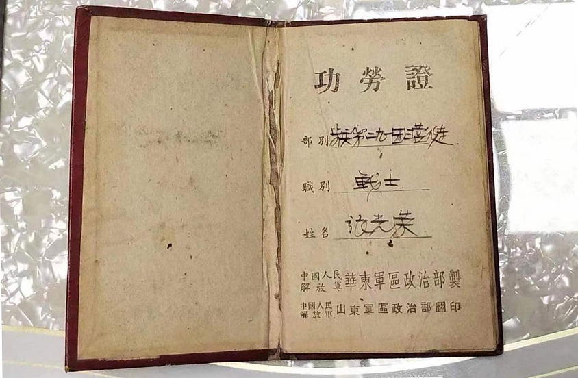 面对来看望他的爱心人士,张光荣先生及家人非常高兴、老人家兴致勃勃的向我们讲述了他的戎马生涯。他1931年生于山东寿光,1948年参加了中国人民解放军渤海军区15团,参加过解放济南战役。时光荏苒,一晃70多年过去了,但从老人拿出的颜色泛黄的华东军区政治部颁发的“功劳证”,上清晰记载着步兵二九一团三营九连战士张光荣的字样。虽然证书已经破旧了,但它却记载着老人的光荣往事和岁月的沧桑。
