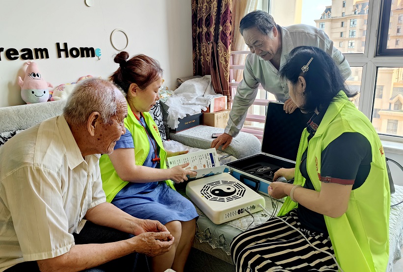 老人家的讲述使前来慰问的爱心人士们深受教育。黑龙江天德健康产业发展有限公司总经理崔玉兰女士,向张光荣老先生赠送了由该公司生产的价格上万元的“天德缘”牌智慧型声控远红外磁电脉冲仪器一台。并耐心的给老人介绍讲解该仪器一台在手,全家受益的性能及详细的使用方法。爱心志愿者们希望老张光荣老人健康长寿,幸福的安度晚年。