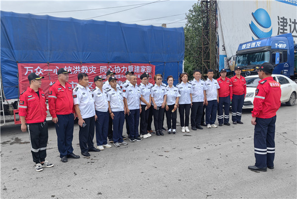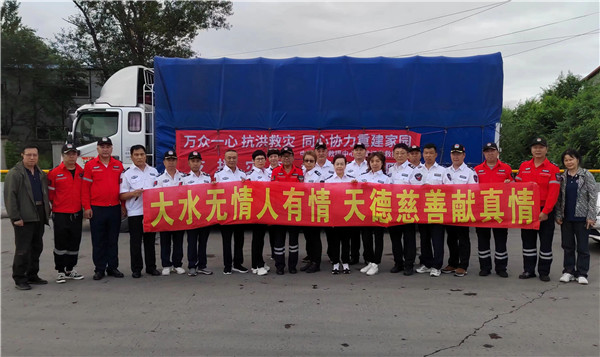 天德讯(汉魂) 8月8日上午,中国国际救援中心黑龙江省救援总队联手哈尔滨市天德慈善公益服务发展中心带着紧急募集的矿泉水、方便面、八宝粥、棉衣、棉被等近10余万元两大卡车的救灾物资,紧急前往距离哈尔滨三百多公里外水灾发生地大海林林业局。慰问灾区民众,支援灾区恢复重建工作。