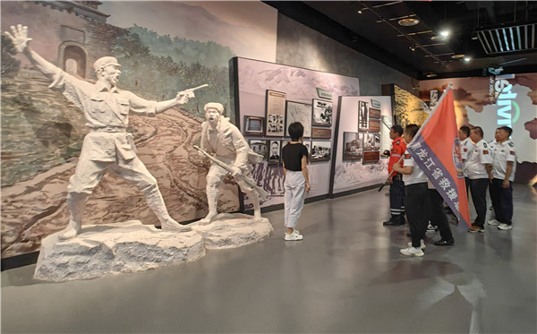 全体队员进入展厅后在英雄杨子荣塑像前,脱帽肃立向英雄行军礼致敬。紧接着在解说员的带领下,大家缓步聆听着杨子荣为党为国英勇牺牲的英雄事迹。