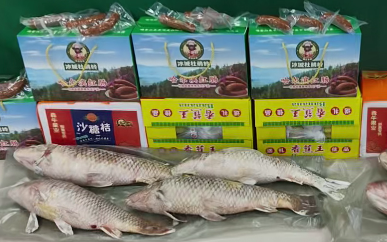 今天一大早,道里区润泽老年公寓的老人们都不约而同地来到了活动大厅,盼望着社会各界爱心人士的到来。只见活动大厅里人们都在忙里忙外地往屋里搬运着慰问品。“活鲜氧气包”内鱼儿在水中摆头摇尾,冷冻的大鱼有50多公分长,静静地卧在地面上,用藏香黑猪肉制作的红肠和砂糖橘、香蕉等慰问品把现场摆放得像年货大集。