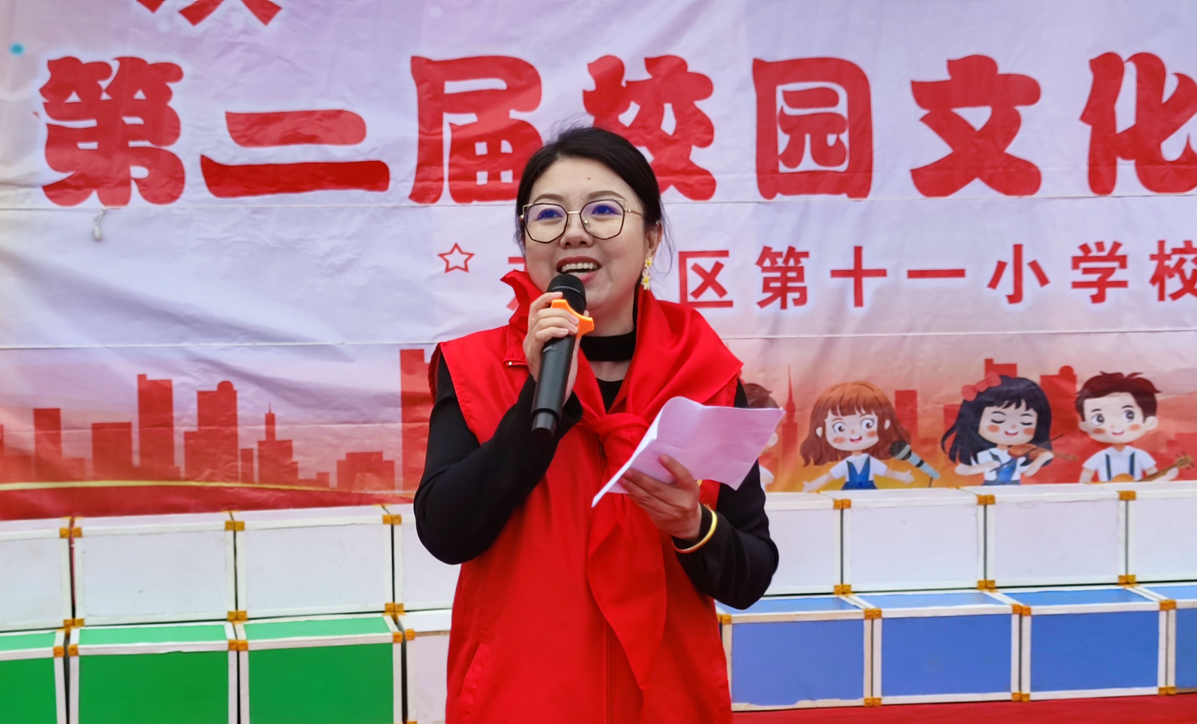 31一大早30多名爱心志愿者们冒雨从全市的不同地方汇集到了位于香坊区的天德慈善的办公地点,带好为孩子们定制的节日礼物,分乘多辆汽车,一路兼程驱车来到了距离市区五十多公里外的双城区第十一小学校。此时的学校的广场红旗招展,锣鼓喧天,孩子们各个都洋溢着幸福的笑脸,尽享节日的快乐。