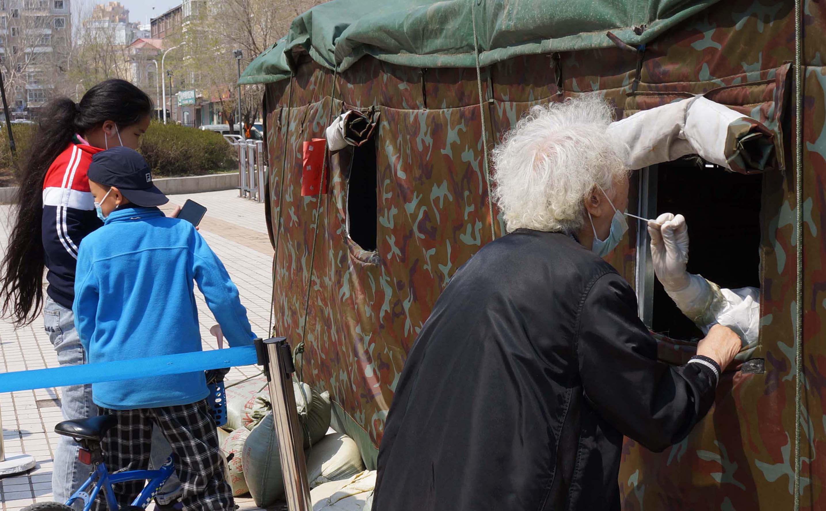 进驻白毛小区后,志愿者们每天早6;40便到达核酸检测现场,一直到晚上7点才结束。工作中,尽管志愿者不断的维持秩序,但在登记处和采样处的两个窗口之间还是时而出现间隔距离不规范的问题。为了改变这一状况,崔玉兰主任想方设法的买到了不锈钢隔离带围栏伸缩警戒线,安置在核酸检测帐篷的两侧, 及时解决了登记和采样两个窗口之间偶尔出现的间隔距离问题。