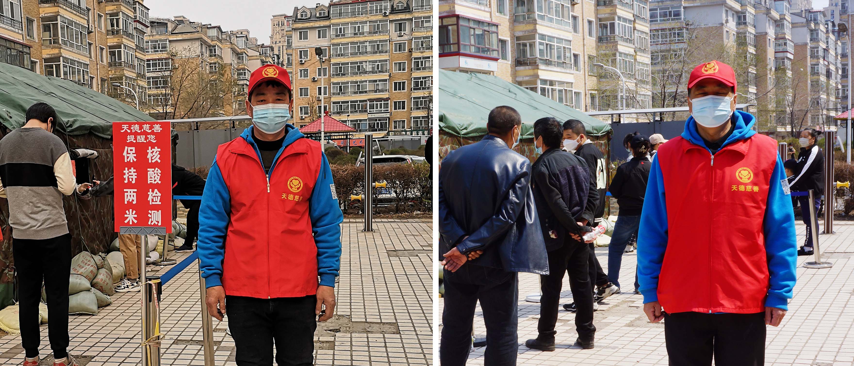 天德慈善的志愿者虽然整日伫立在室外的核酸检测现场,身体非常疲惫。但是他们能够相互关照,轮流吃饭,轮流休息,圆满的完成了这次全民抗疫任务。