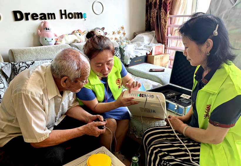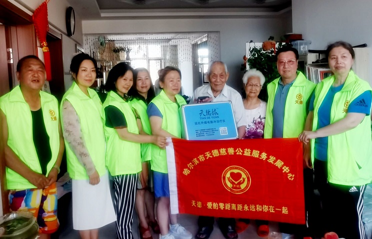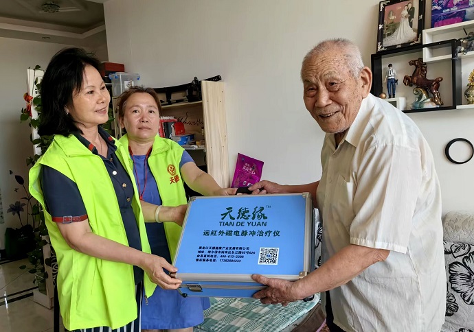 老人家的讲述使前来慰问的爱心人士们深受教育。黑龙江天德健康产业发展有限公司总经理崔玉兰女士,向张光荣老先生赠送了由该公司生产的价格上万元的“天德缘”牌智慧型声控远红外磁电脉冲仪器一台。并耐心的给老人介绍讲解该仪器一台在手,全家受益的性能及详细的使用方法。爱心志愿者们希望老张光荣老人健康长寿,幸福的安度晚年。