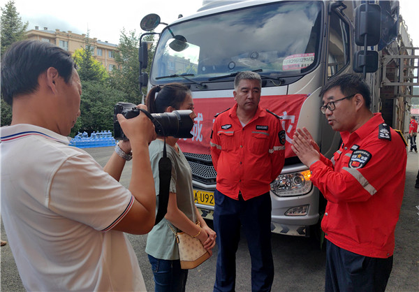 天德讯(汉魂) 8月8日上午,中国国际救援中心黑龙江省救援总队联手哈尔滨市天德慈善公益服务发展中心带着紧急募集的矿泉水、方便面、八宝粥、棉衣、棉被等近10余万元两大卡车的救灾物资,紧急前往距离哈尔滨三百多公里外水灾发生地大海林林业局。慰问灾区民众,支援灾区恢复重建工作。