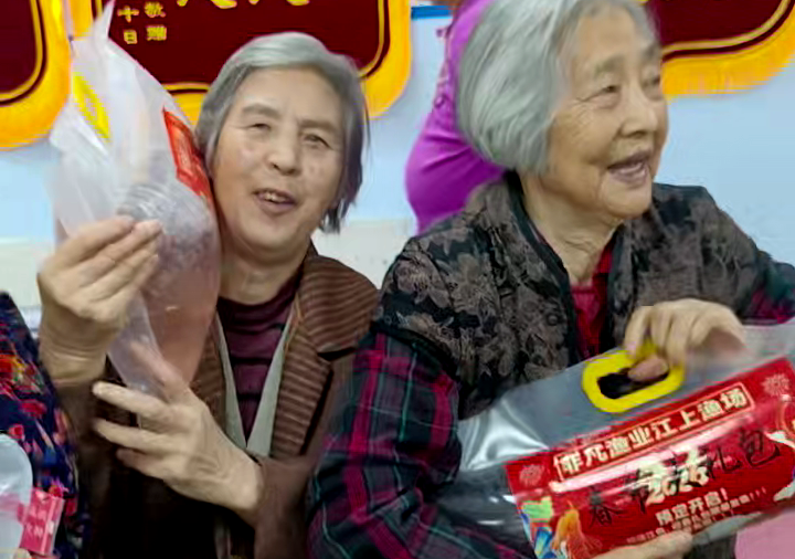 今天一大早,道里区润泽老年公寓的老人们都不约而同地来到了活动大厅,盼望着社会各界爱心人士的到来。只见活动大厅里人们都在忙里忙外地往屋里搬运着慰问品。“活鲜氧气包”内鱼儿在水中摆头摇尾,冷冻的大鱼有50多公分长,静静地卧在地面上,用藏香黑猪肉制作的红肠和砂糖橘、香蕉等慰问品把现场摆放得像年货大集。
