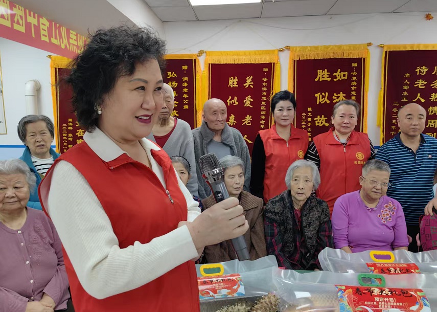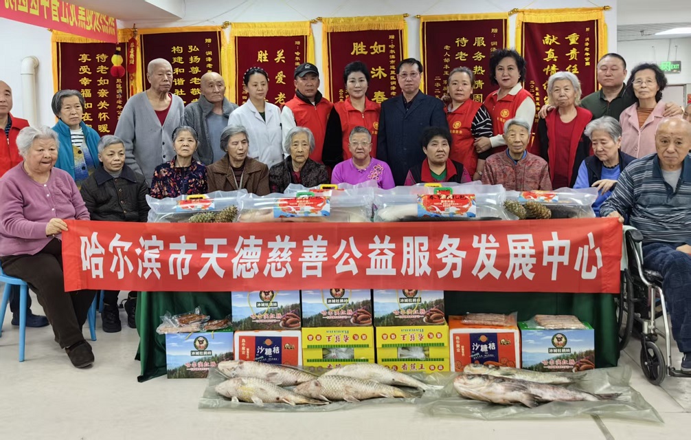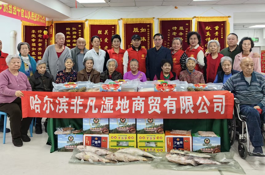 天德网2026年2月11日讯(汉魂)在马年春节即将到来之际,哈尔滨市天德慈善公益服务发展中心、哈尔滨市哈尔非凡湿地商贸有限公司、哈尔滨市仲尼文化传媒有限公司、哈尔滨市杜鹃岭农业科技有限公司藏香猪养殖基地等四家爱心人士,相约来到了道里区润泽老年公寓,慰问生活在这里的老年朋友们。